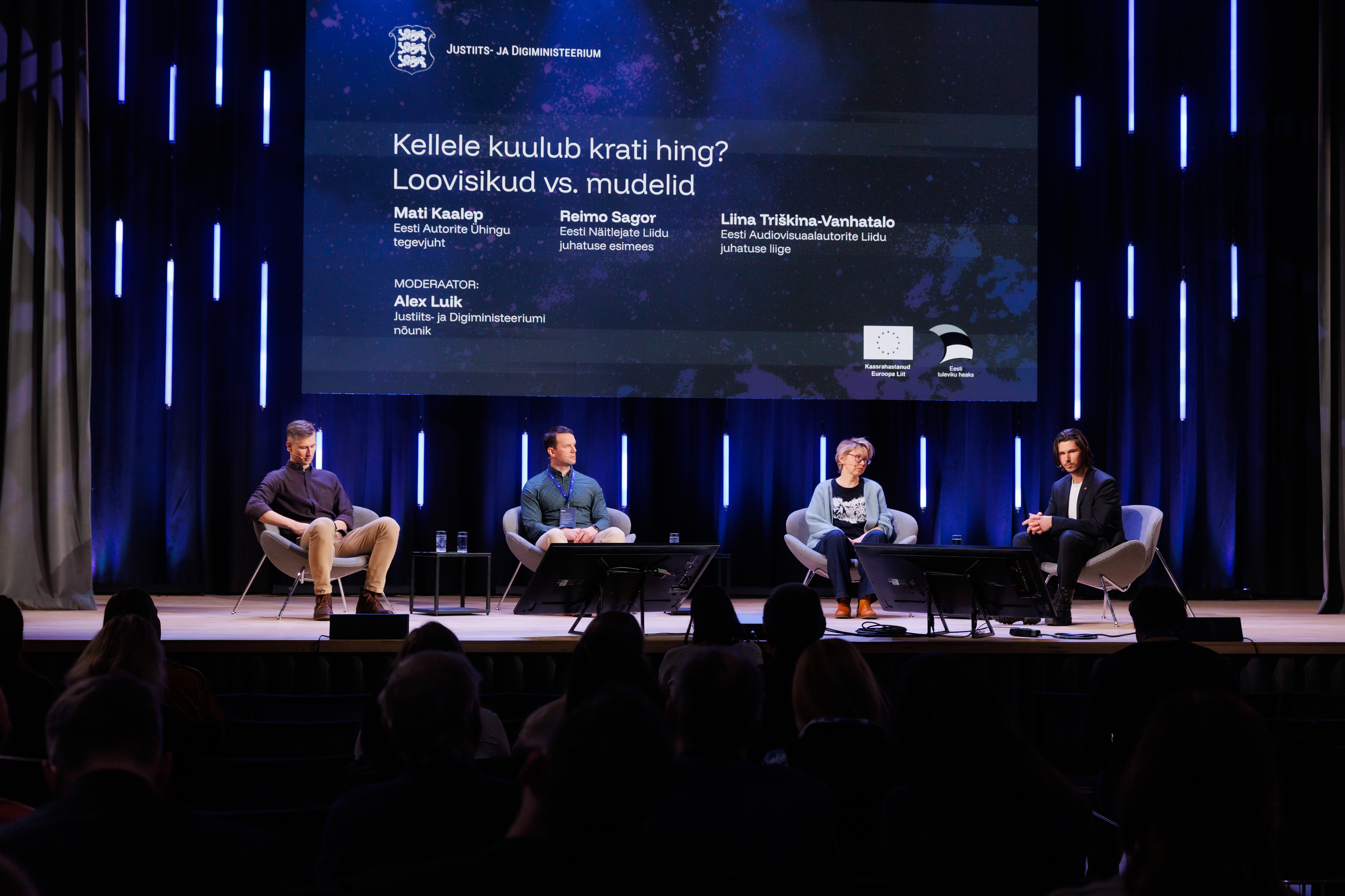 Loovisikute seisukohti esindasid paneelis „Kellele kuulub krati hing? Loovisikud vs mudelid“ lisaks minule Mati Kaalep (Eesti Autorite Ühing) ja Liina Triškina-Vanhatalo (Eesti Audiovisuaalautorite Liit). Meie peamine sõnum seisnes TI treeningandmete läbipaistvuse vajaduses ja autoritele ning esitajatele tekitatud kahju hüvitamises. Selles osas ootame Eesti riigilt aktiivset tegutsemist – kohe, nüüd, eile! Näitlejate esindusorganisatsioonid USAs (SAG-AFTRA) ja Saksamaal (BFFS) on saavutanud positiivseid kokkuleppeid tootjatega deepfake’de ehk digitaalsete koopiate kasutamise osa audiovisuaalsektoris (AV), aga muusikute ja AV autorite olukord on oluliselt murettekitavam. Seejuures teevad rahvusvahelised TI mudeleid omavad suurkorporatsioonid jõulist lobitööd Euroopa TI määruse (EU AI Act) autorite ja esitajate niigi nõrkade kaitsemehhanismide veelgi nõrgestamiseks.